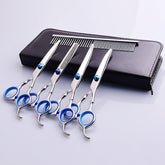 Give your beloved furry friend a stress-free and stylish grooming experience right in the comfort of your own home with our professional-grade pet grooming scissors. Designed for pet owners and professional groomers alike, these high-quality scissors provide precision and comfort, making at-home grooming a breeze. Say goodbye to expensive salon visits and hello to beautifully coiffed pets!